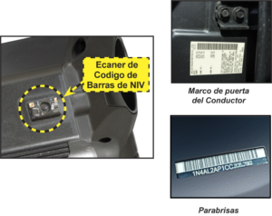 Código de barras/parabrisas limpios: La suciedad en las superficies puede interferir con el proceso de escaneo. De ser necesario, limpie el código de barras del VIN con un paño o con los dedos para eliminar cualquier suciedad en la superficie.