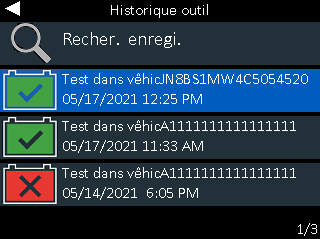 Permet d’accéder aux historiques des tests archivés ou d’effectuer une recherche dans l’historique des tests par NIV ou par technicien.